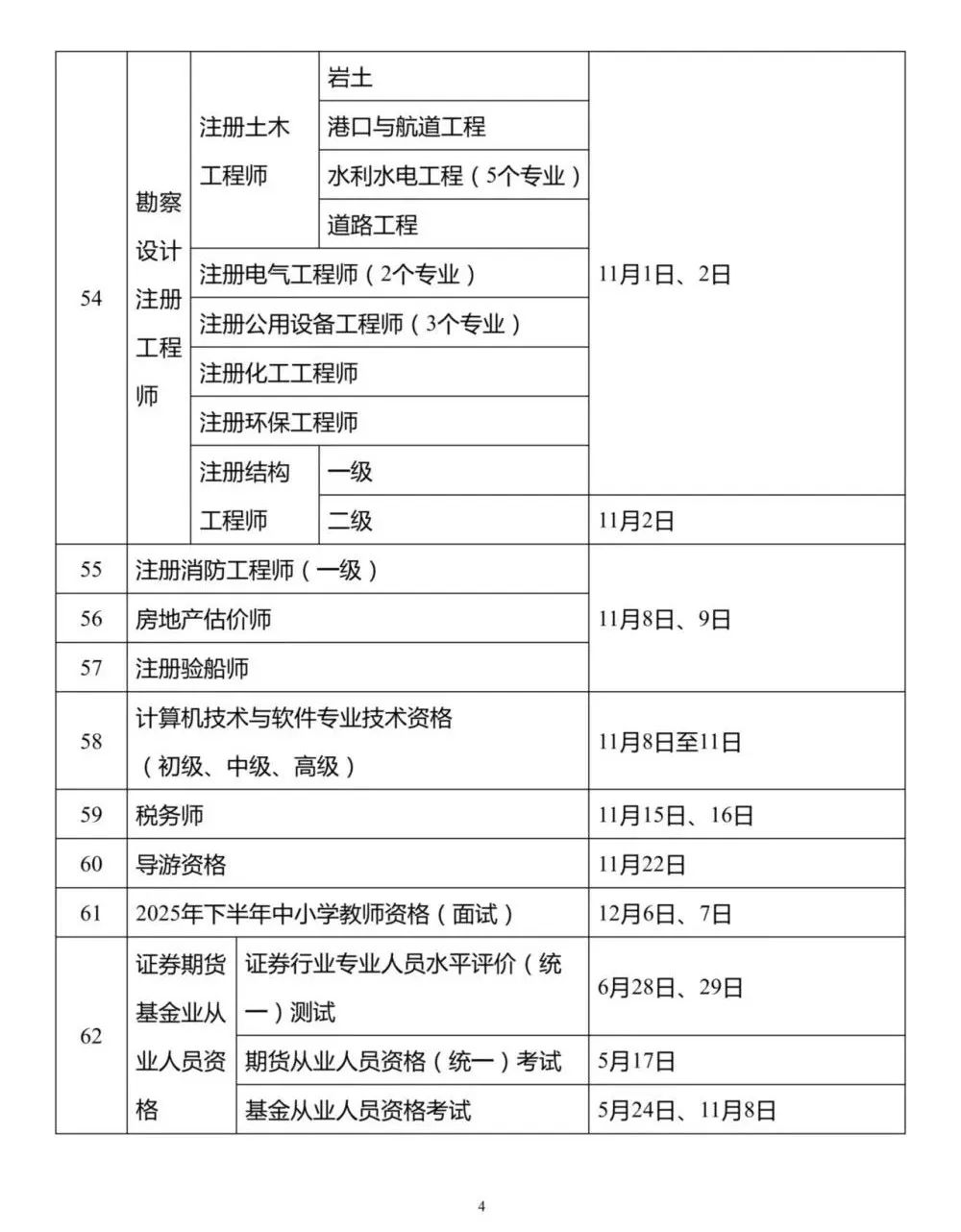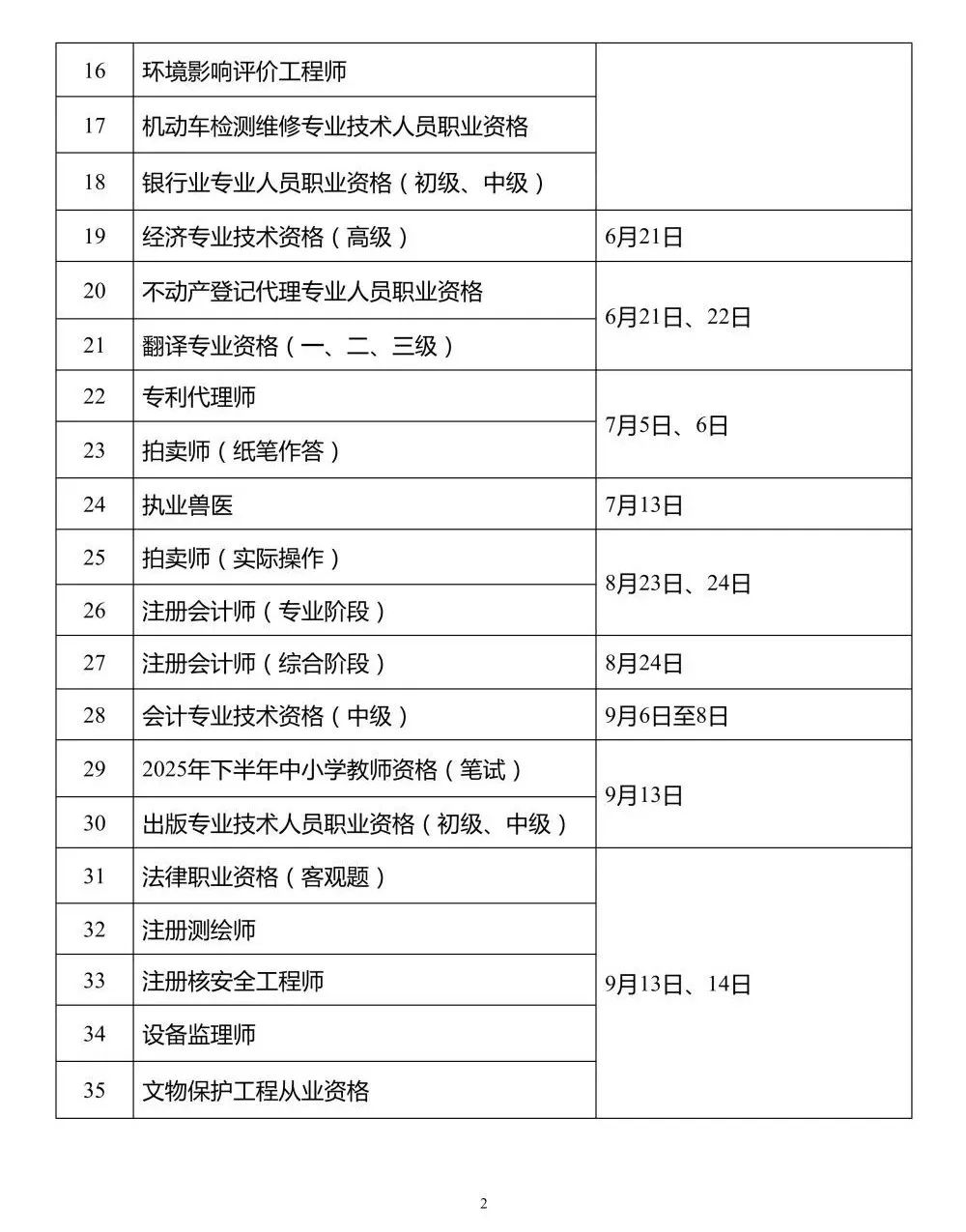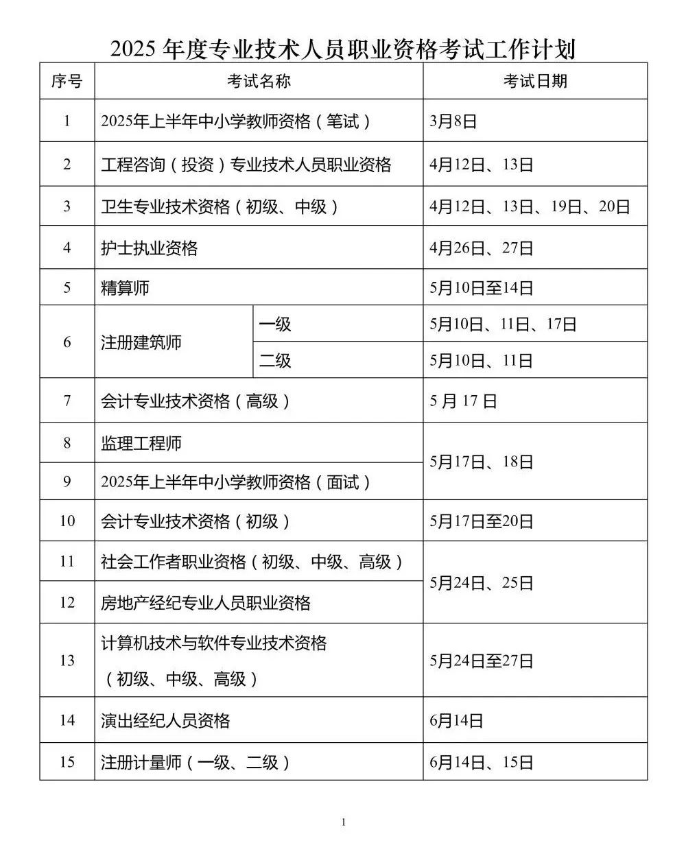 2025年度專業(yè)技術(shù)人員職業(yè)資格考試時(shí)間表公布
