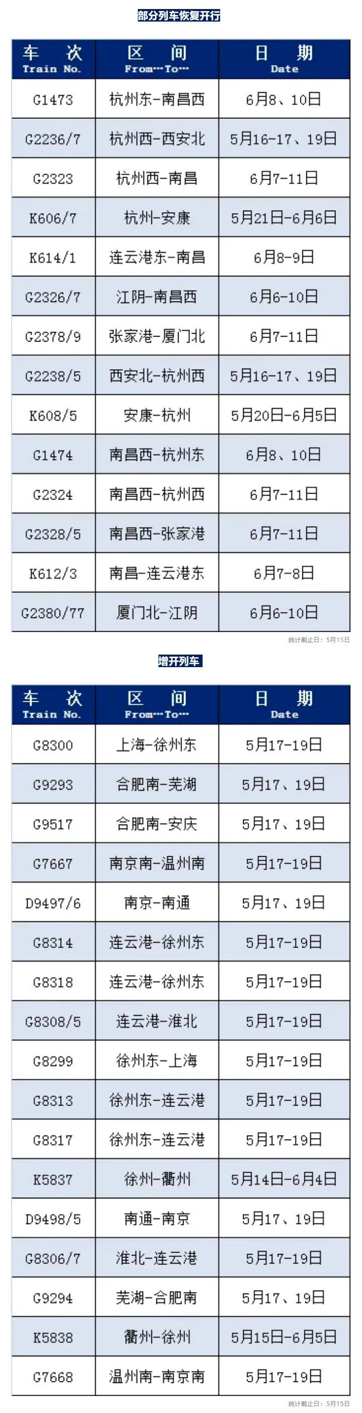 恢復開行、增開多趟旅客列車