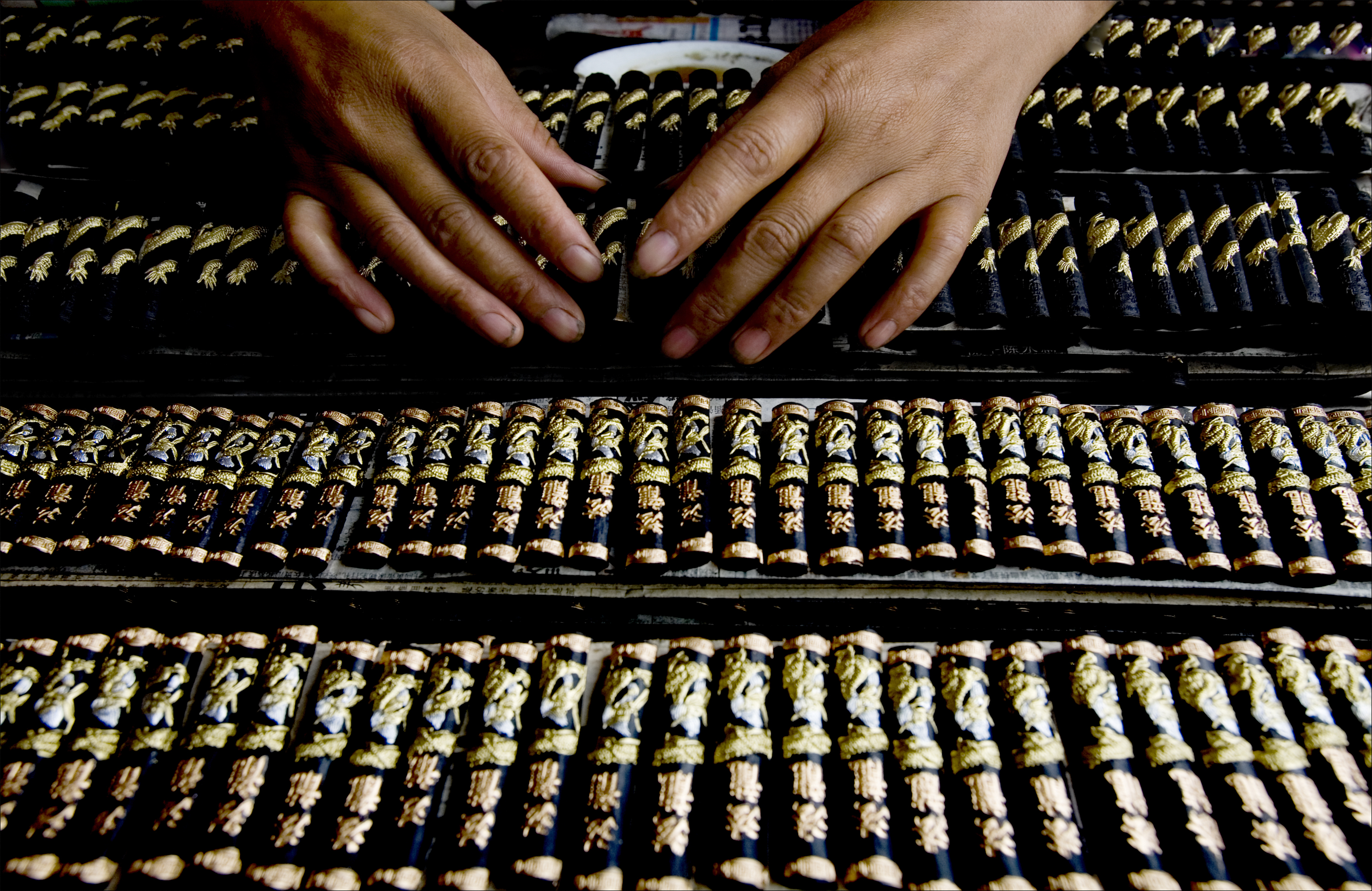 墨的發明是我國先民對中國文化乃至世界文明的一項重大貢獻。徽墨是我國制墨技藝中的一朵奇葩,在中國制墨史上占有重要地位。用傳統技藝制作的徽墨精品具有多方面的優點,有的"其堅如玉,其紋如犀,寫數十幅不耗一二分也",有的"香徹肌骨,磨研至盡而香不衰",有的"取松煙,擇良膠,對以杵力……滓不留硯",有的"堅如石,紋如犀,黑如漆,一螺值萬錢",有的"光可以鑒,鋒可以截,比德于玉,縝密而栗。其雕鏤之工,裝飾之巧,無不備美"。