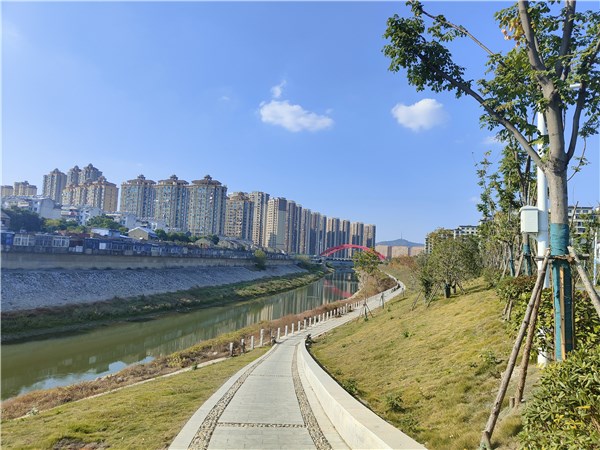 17.解放河景觀帶:解放河景觀帶南啟于宣杭鐵路橋,北至謝村泵站,建成于2022年,總長約1.57公里,面積25公頃(水面面積6公頃)。