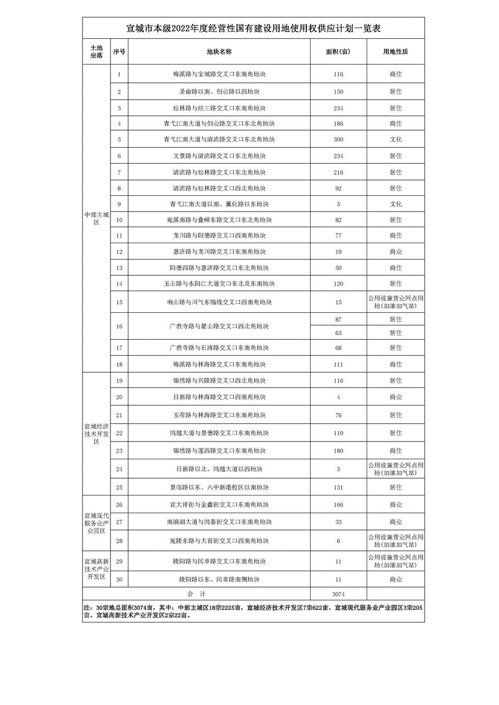 名稱: 宣城市本級2022年度經營性國有建設用地使用權供應計劃
