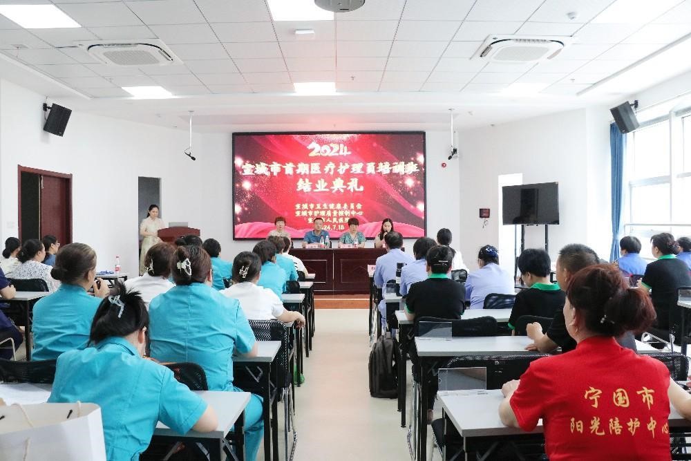 7月18日,宣城市首期醫療護理員培訓班結業典禮在宣城市人民醫院臨床技能中心舉行。經規范化培訓考核,首期招募的56名學員順利結業,10名學員獲評優秀。