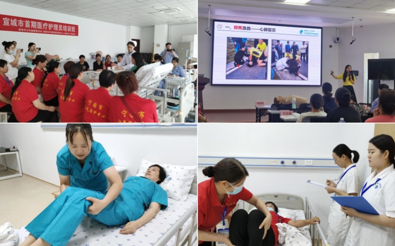首期醫療護理員培訓由宣城市衛生健康委員會、宣城市護理質控中心主辦,培訓為期一周,共開設33場理論培訓和12場操作培訓,涵蓋基礎護理知識、床旁服務、特殊人群照護以及清潔與消毒隔離技術、人文關懷素養等多方面內容。