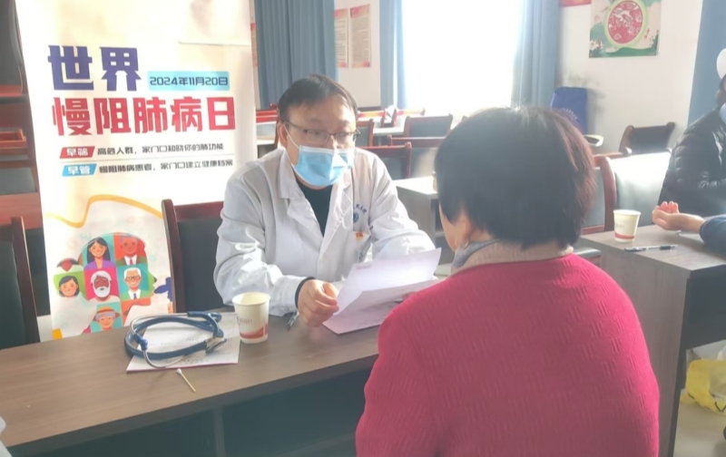 活動中,呼吸與危重癥醫學科護理單元圍繞慢阻肺的專病防治知識、指導呼吸康復訓練,提升患者的自我管理水平。呼吸與危重癥醫學科醫療單元組織心血管內科、消化內科、神經內科、血管外科等多學科專家團隊赴黃渡鄉楊林村村委會開展健康義診、通過免費肺功能檢篩查、疾病咨詢答疑,慢阻肺知識科普、用藥指導等方式,提升公眾對慢性阻塞性肺病、腦梗、心梗等疾病防治常識的知曉率。