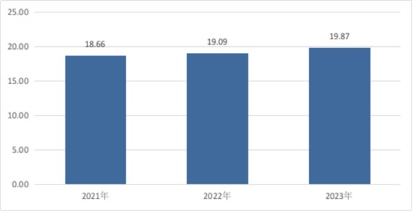 一是人員結構進一步優化。2023年,全國三級公立醫院的衛生技術人員總量穩步增長,達到314.05萬人,其中具有副高級職稱及以上的醫務人員比例為19.87%,較2022年增加0.78個百分點(見圖10)。麻醉、兒科、重癥、病理、中醫、感染性疾病科醫師總數分別為5.34萬人、6.50萬人、2.32萬人、1.78萬人、6.86萬人、1.82萬人,較2022年均有增長,急需緊缺專業人才隊伍建設進一步加強。此外,三級公立醫院注冊護士為170.82萬人,較2022年增加5.94萬人,醫護比保持穩定,護士隊伍持續壯大。
