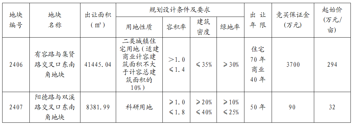 2406號地塊位于:有容路以東、集賢路以南,出讓面積41445.04平方米。