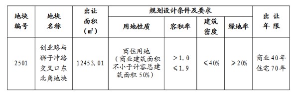 2501號地塊位于創業路與獅子沖路交叉口東北角,出讓面積12453.01平方米,該地塊起始總價為4596萬元。最終由宣城梁辰置業有限公司以人民幣4598萬元競得